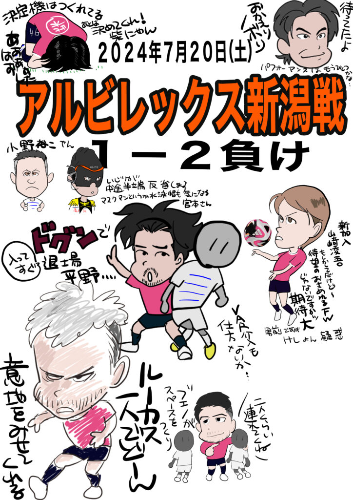 明治安田J1リーグ 第24節2024年7月20日(土)19:03 アルビレックス新潟戦(H) KOヨドコウ桜スタジアム 1−2負け